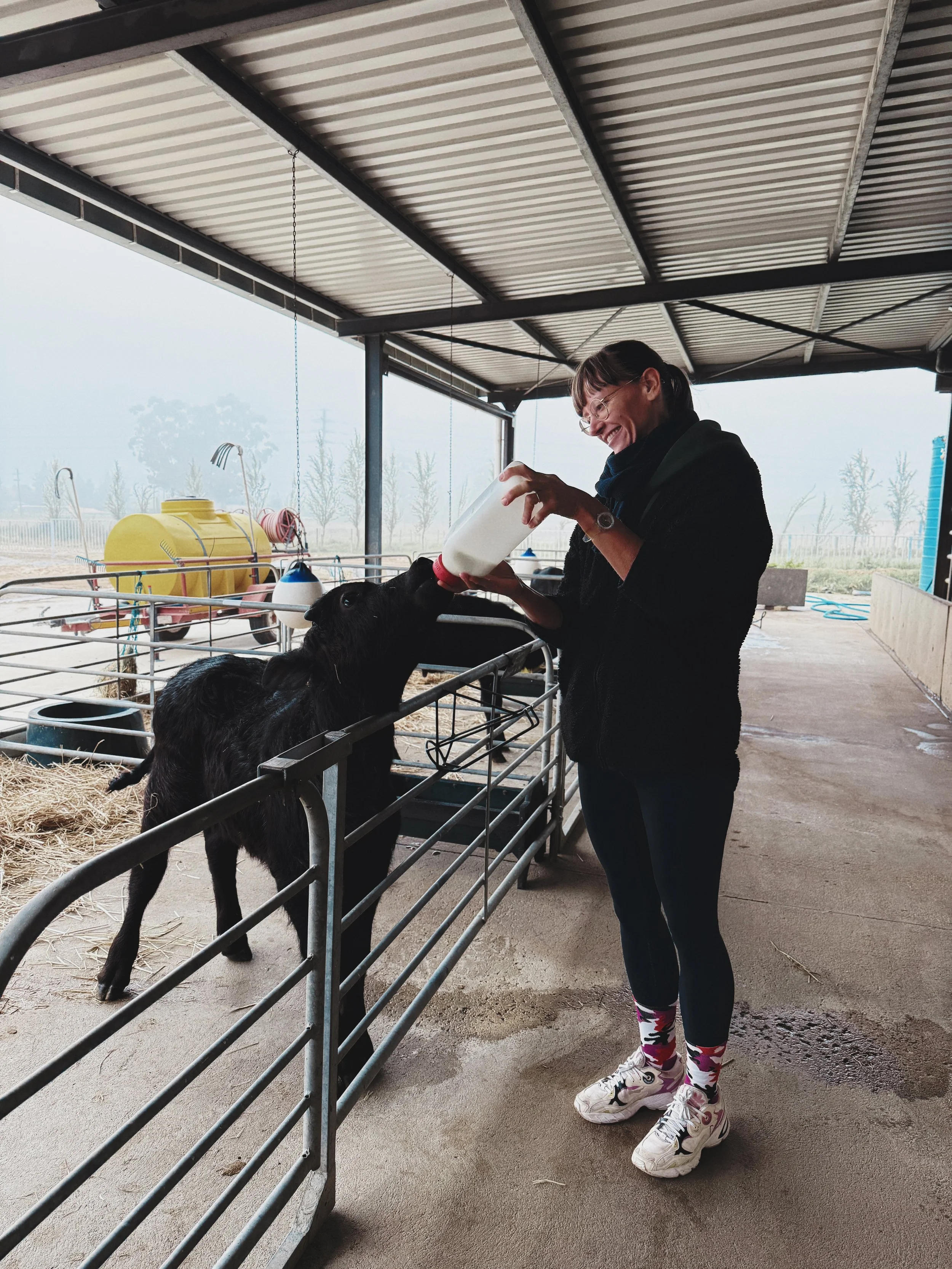 They chose water buffalo over cows, so the dairy has a distinct personality. A cow can yield up to ~20 litres a day; a buffalo is closer to ~5. The milk is rich and bright; you meet it again in mozzarella and gelato. We fed calves (the wellies earn their keep) and heard about the name-the-calf jar: drop in a coin with your name and, when there’s a newborn, yours might be drawn. Really charming—and a word-of-mouth machine. (Their marketing is full of touches like this—I might write a separate piece on it.)