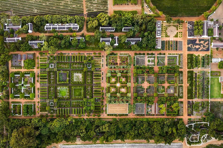 Thirty minutes from Stellenbosch, you roll past vineyards and white gables toward a small hill—a koppie—that early owners thought looked like the Tower of Babel. The name stuck: Babylonstoren. The farm goes back to 1692, but the version you walk today began in 2007, when Koos Bekker and Karen Roos took it on and opened to guests in 2010. They asked French architect Patrice Taravella to sketch the garden, which is why it reads like edited abundance—order, a little wild, then order again. There are a few more places in UK and also Italy run by the same owners.
